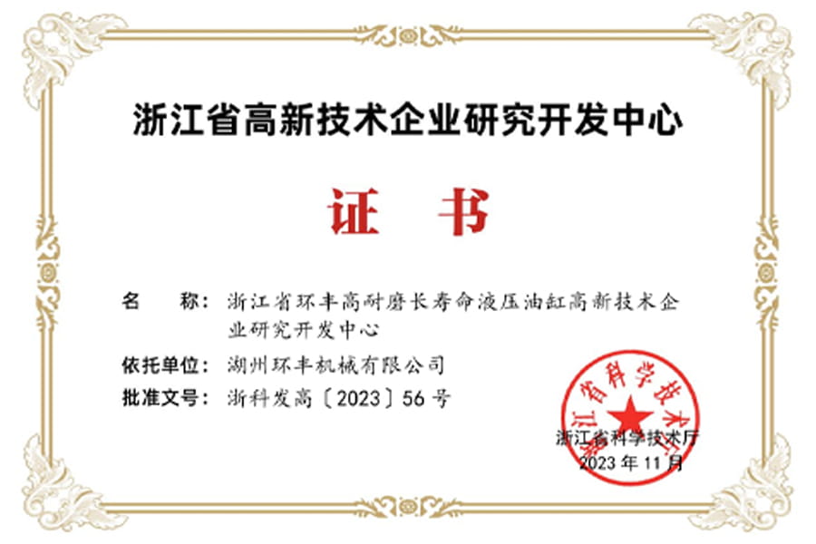 Deimhniú Ionad Taighde agus Forbartha Fiontraíochta Ardteicneolaíochta Zhejiang Province