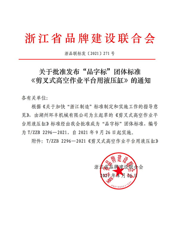 Fógra maidir le ceadú an fhoilseacháin “Pinyibiao” caighdeán “sorcóir hiodrálacha le haghaidh ardáin oibre ón aer scissor-fork